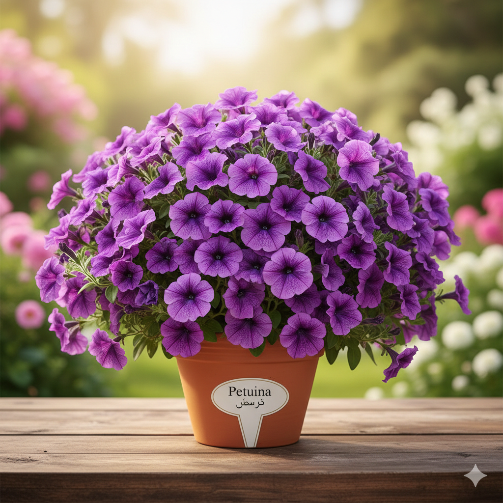 واحدة من أشهر زهور الزينة، تتميز بتنوع ألوانها وشكلها القمعي الجذاب. مثالية للأحواض وتغطية المساحات الأرضية.