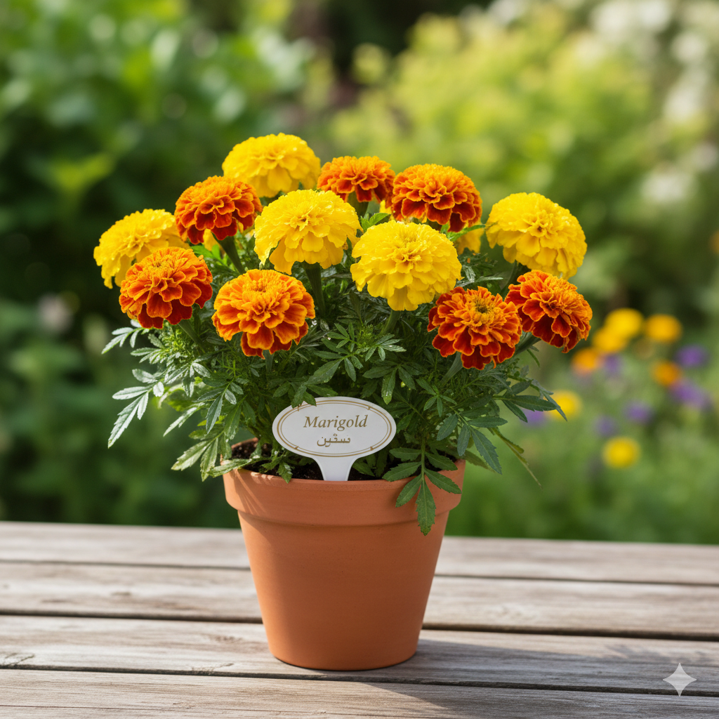 نباتات قوية ومبهجة بزهور تشبه كرات الصوف باللون الذهبي والبرتقالي. تعمل كطارد طبيعي للحشرات وسهلة العناية جداً.