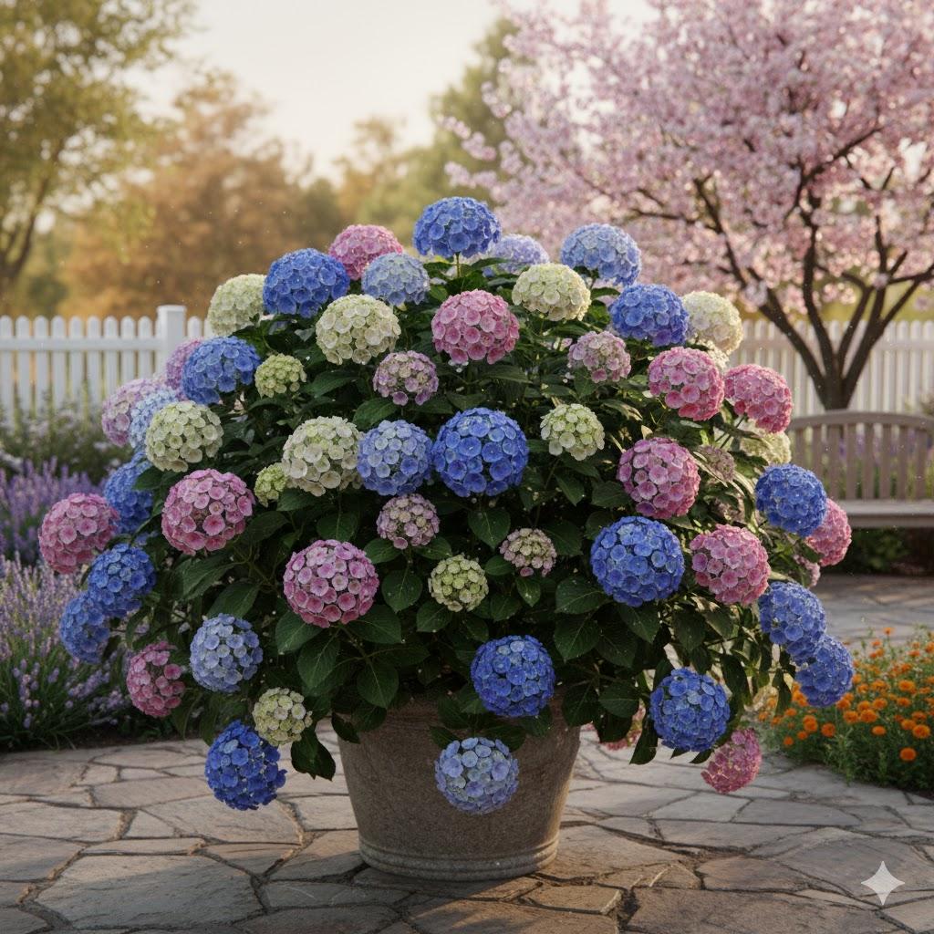 نبات اصله من اليابان ويمكن ان ينمو كشجيرة ويعطي مجموعات زهرية جميلة يتراوح لونها بين الابيض والزهري والازرق ويتأثر لون الازهار بدرجة حموضة التربة حيث تتحول الالوان الزهرية للازرق عندما تقل درجة حموضة التربة الى 5 في السنة الثانية ...